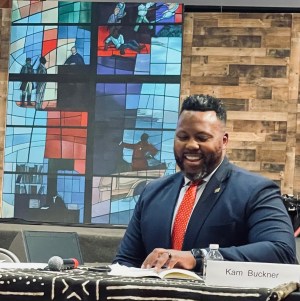 At a Sunday afternoon mayoral forum the candidates were peppered with the usual questions on crime, education, housing. Afterwards, a long line waited for selfies and handshakes with Kam Buckner while the other candidates packed up to leave.