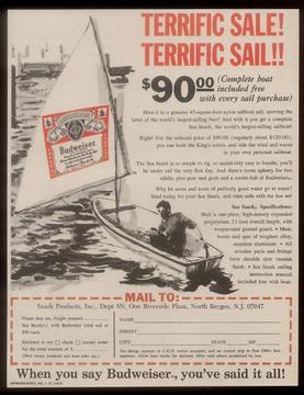 The used Sunfish we purchased for fifty dollars came with a booklet on ‘how to sail’. With a crab claw sail and simple two line rigging, the thirty pound polystyrene Sunfish distinguished itself as a perfect learner’s boat. A 1971 ad in Boating magazine called the Sunfish the “Volkswagen of sailboats.” I called it a styrofoam bathtub.
