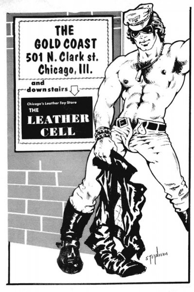 “Sit down and read this,” he said, handing over a Sun-Times opened to an article buried in the back of the paper. The blunt headline read, “Gold Coast Leather Bar Raided”. The article contained facts about the location, the owner, a description of the leather get-ups and the names of eleven men who were arrested. Jim was listed. I read, then read again, looking for an explanation. Abruptly I burst out laughing and fell headlong into uncontrolled hysterics as I slid off the brown